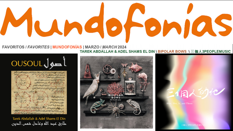 Comenzamos con los tres discos favoritos de Mundofonías de marzo del 2024, que son los nuevos álbumes del dúo franco-belga Bipolar Bows , del también dúo egipcio formado por Tarek Abdallah & Adel Shams El Din y del trío taiwanés 3Peoplemusic. Continuamos con…