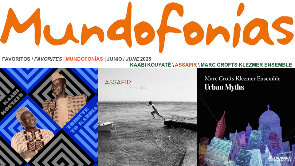 Abrimos con los tres discos favoritos de Mundofonías de junio del 2025, que firman los proyectos internacionales Marc Crofts Klezmer Ensemble y Assafir, que nos traen aires klezmer y del Mediterráneo oriental, así como el nuevo trabajo del artista de raíces mandingas Kaabi…